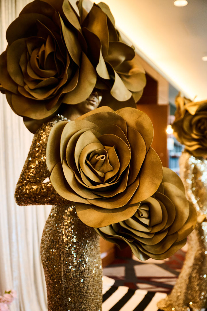 Glamorous cocktail attire—dazzle, shimmer, and drape yourself in gold!